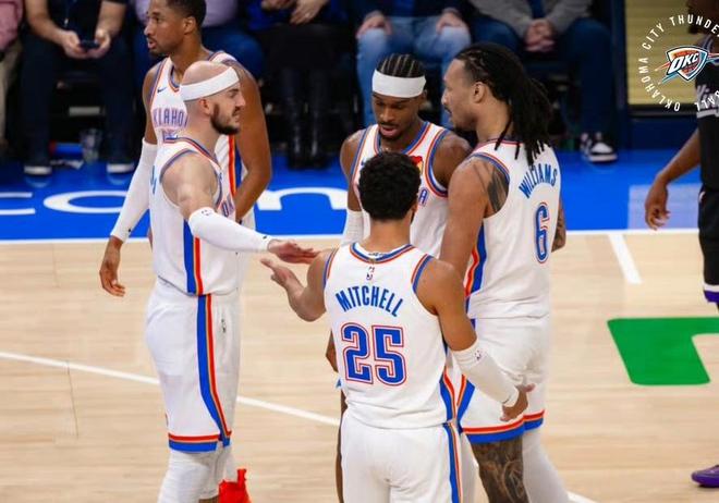 第四,亚历山大MVP实至名归,这场亚历山大又砍下31分9篮板4助攻3盖帽,最后时刻的致命三分为雷霆锁定胜局,这就是超级巨星,数据惊艳的同时,关键时刻也毫不手软。第五,雷霆有一位球员,本赛季表现相当惊艳,阿杰伊-米切尔,可能很多人不太熟悉,是的,我也没怎么听过这人,上赛季他就是雷霆的边缘替补球员,场均也只有6分。而本赛季前5场,米切尔场均轰出18.3分4.8篮板3.5助攻,能力俨然上升好几档,本场比赛,米切尔也得到了18分,他是雷霆队5连胜的最大功臣之一。第六,感觉雷霆少了切特还是不行,这场切特因伤没打,雷霆就打得很挣扎,几乎全场被压制,直到最后时刻才翻盘,切特对于雷霆体系还是相当重要的。